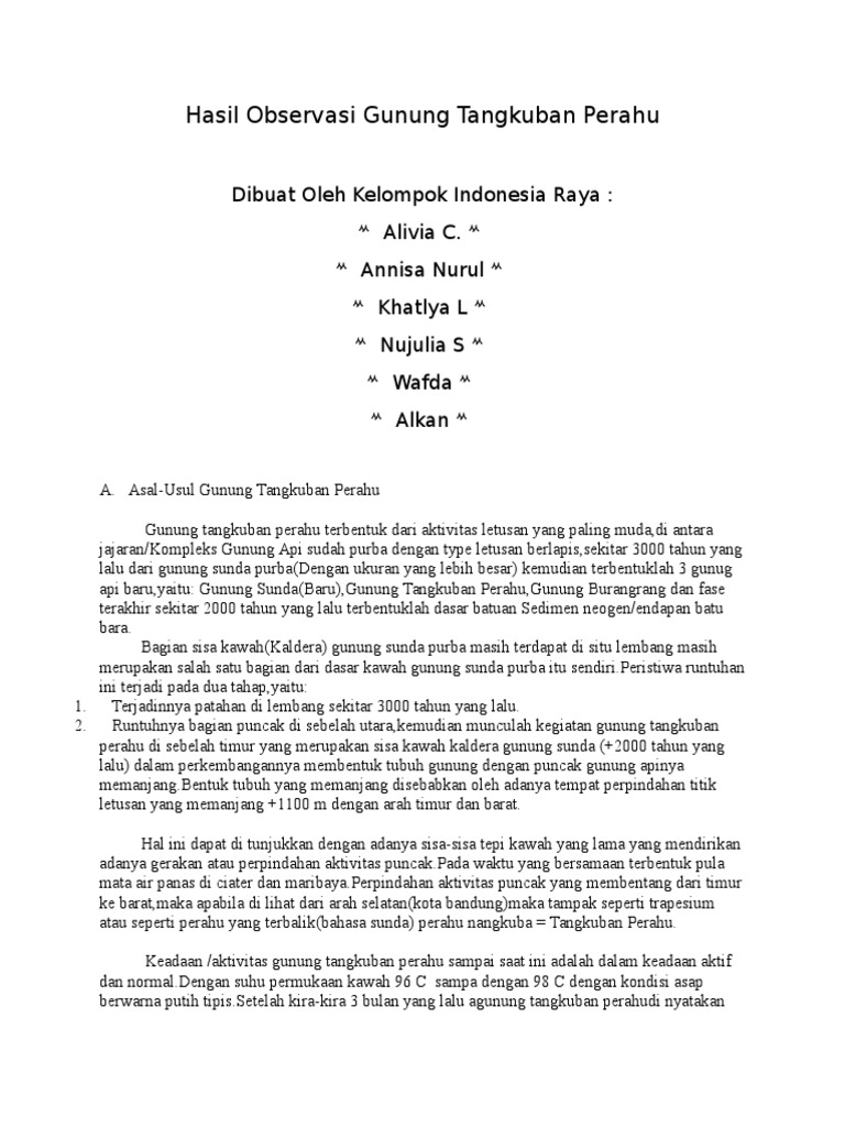 Hasil Observasi Gunung Tangkuban Perahu Pdf